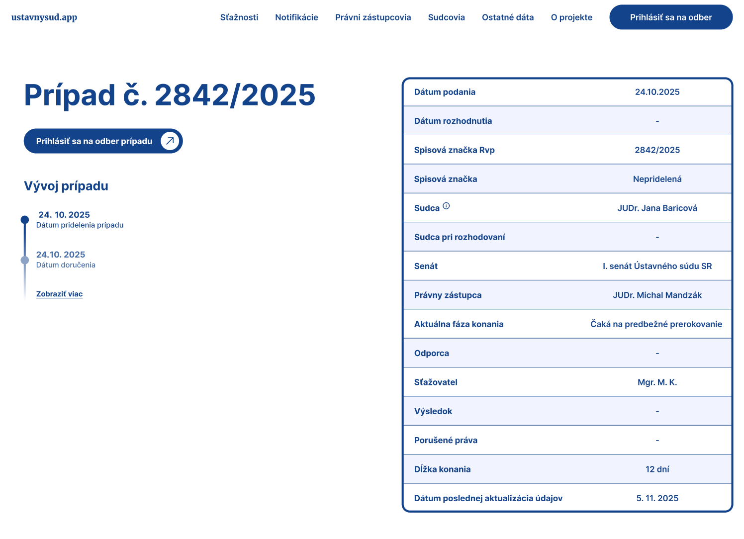 Podporte vznik online nástroja, ktorý umožní sledovanie káuz, právnych zástupcov a sudcov na Ústavnom súde SR. Pre jeho vznik sme spustili crowdfundingovú kampaň cez Donio.sk. Takto vyzerá používateľské prostredie, ktoré práve dokončujeme: